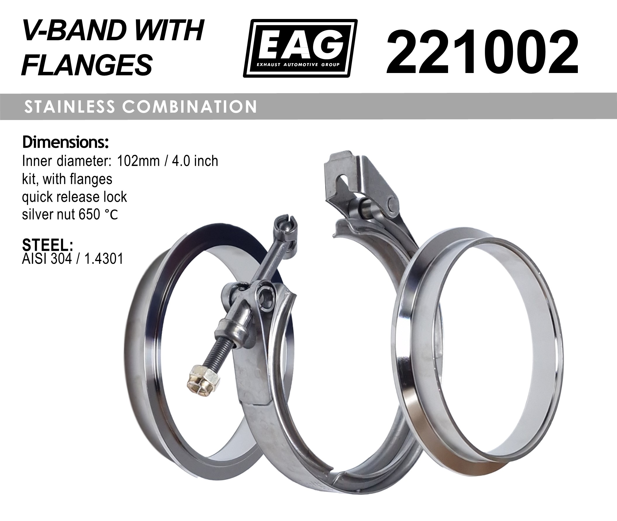 Clamp V-Band 102mm/4.0′ kit (with flange AISI 304)