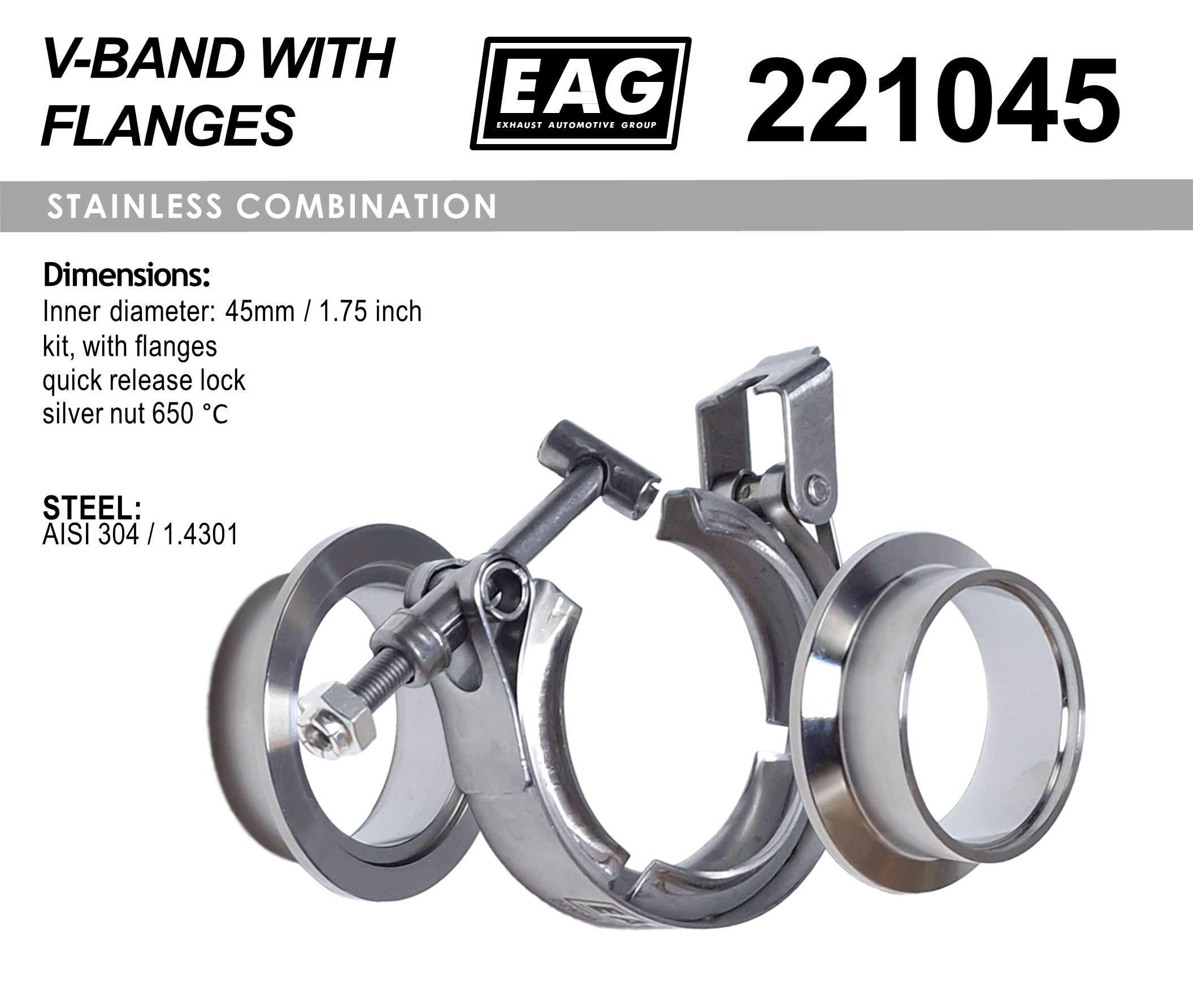 Clamp V-Band 45mm/1.75′ kit (with flange AISI 304)
