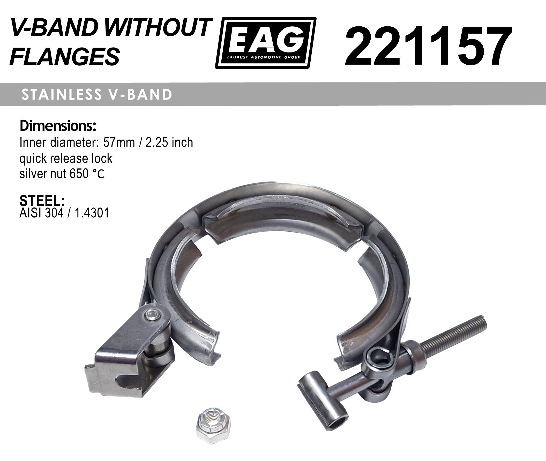 Clamp V-Band 57mm/2.25′ AISI 304