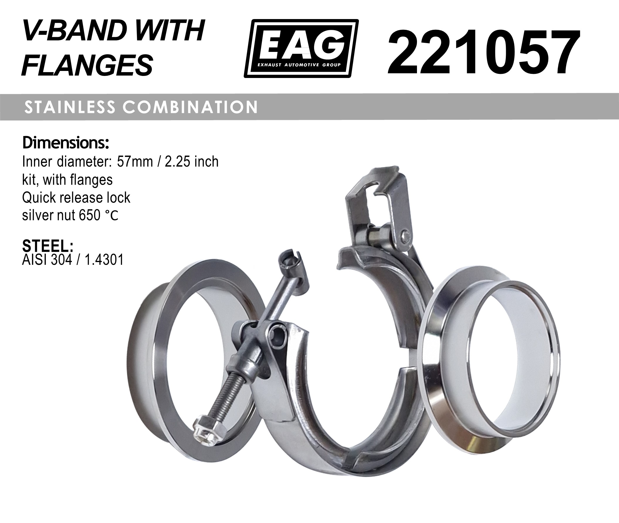 Clamp V-Band 57mm/2.25′ kit (with flange AISI 304)