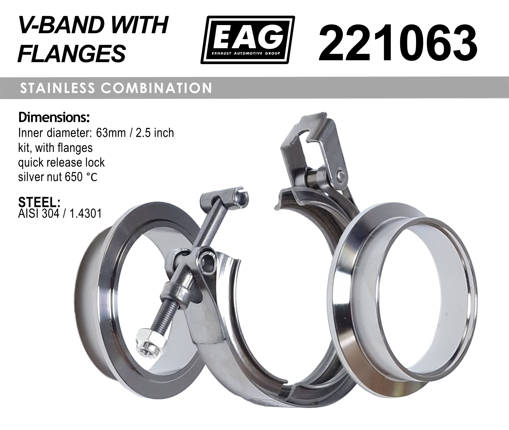 Clamp V-Band 63mm/2.5′ kit (with flange AISI 304)