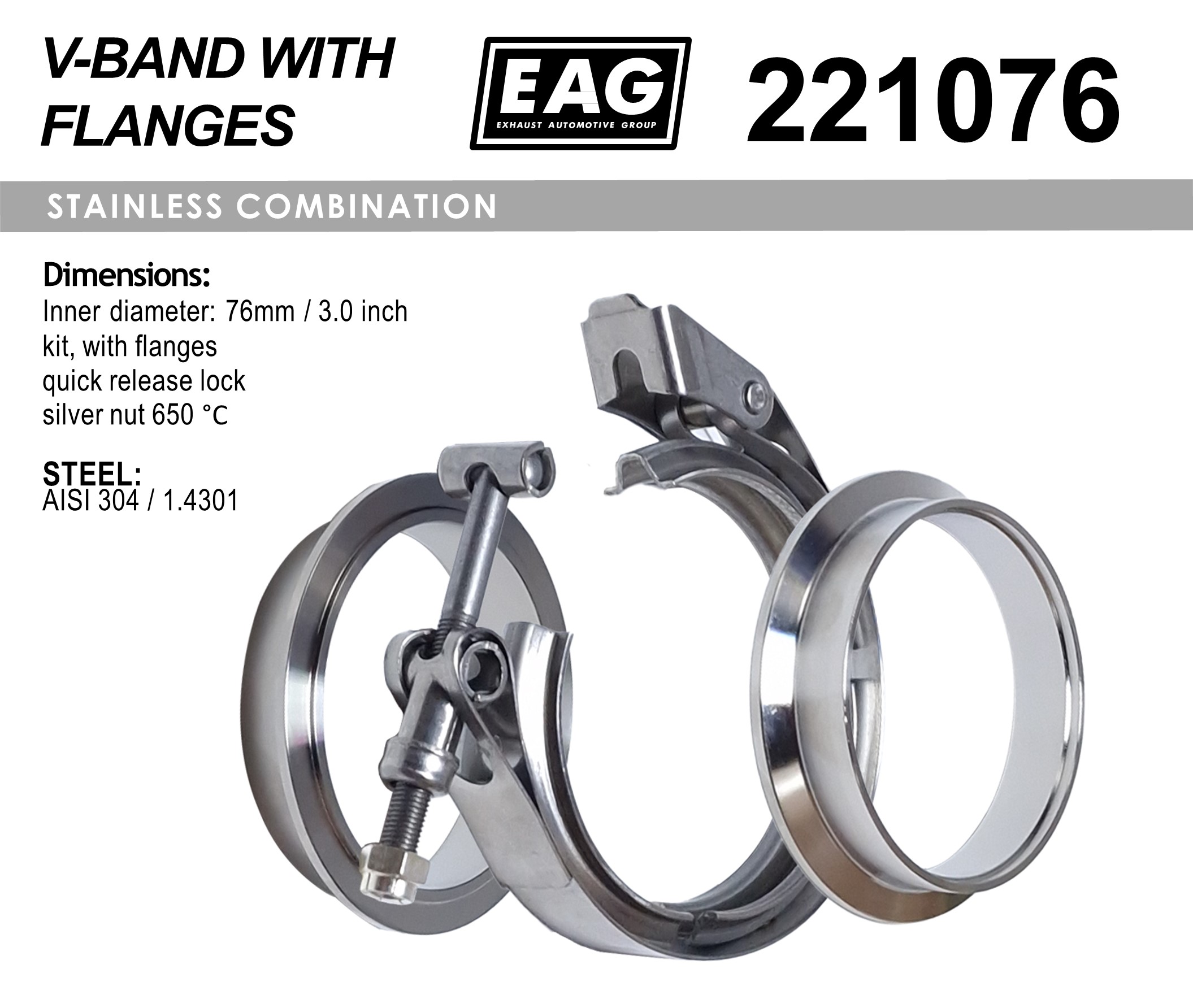 Clamp V-Band 76mm/3.0′ kit (with flange AISI 304)