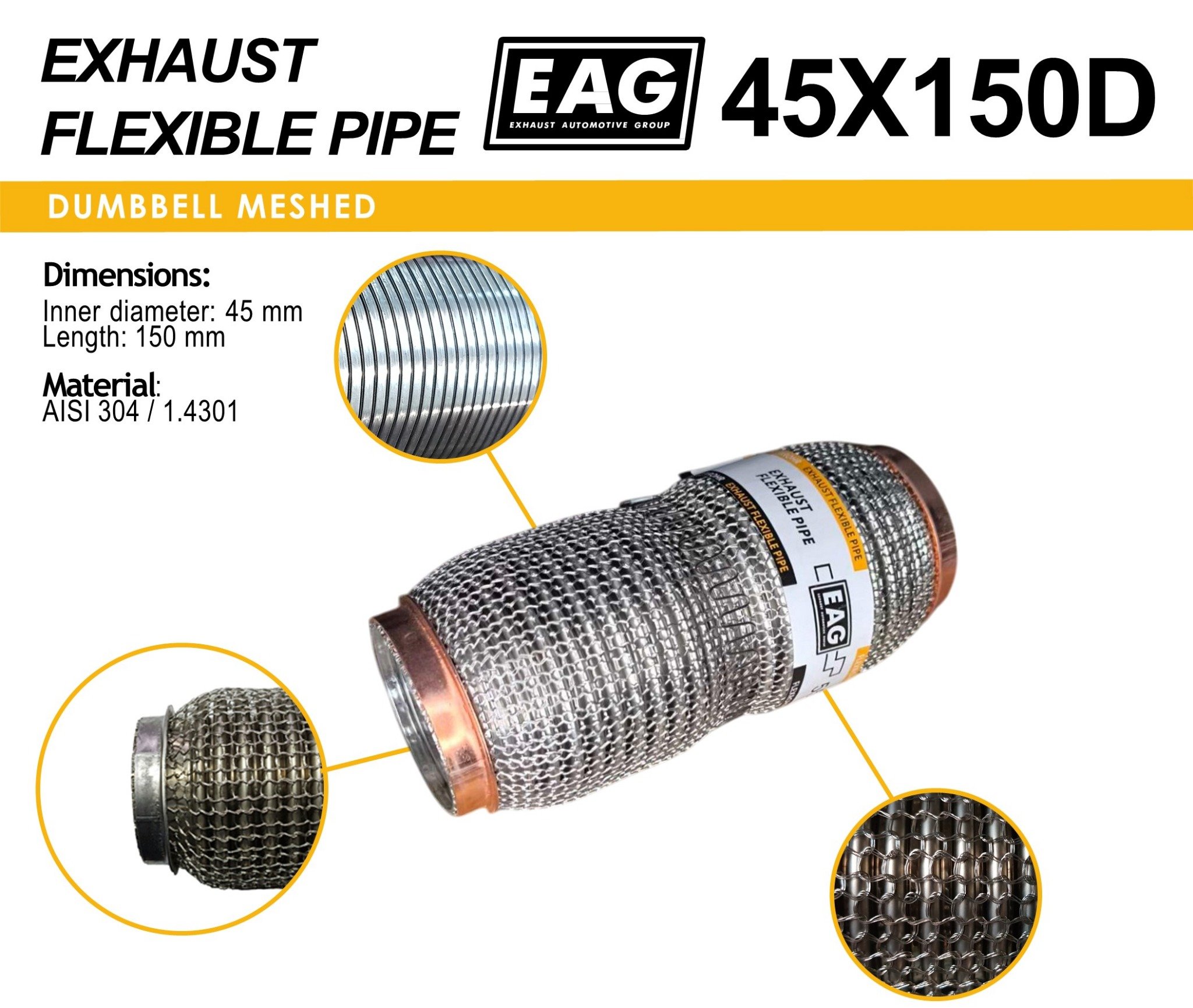 Exhaust Flex Pipe 45×150 (DUMBBELL MESHED)