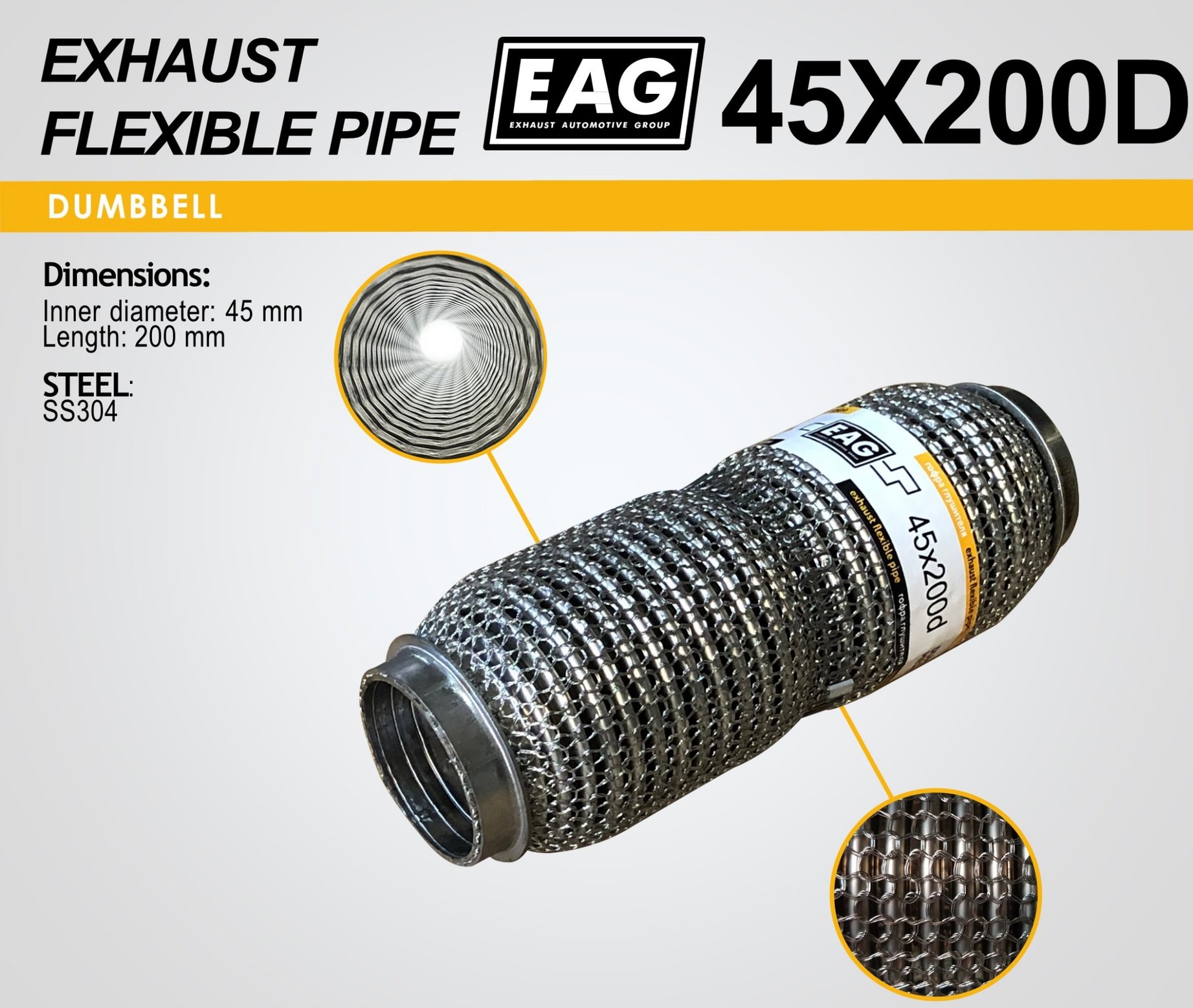 Exhaust Flex Pipe 45×200 (DUMBBELL MESHED)