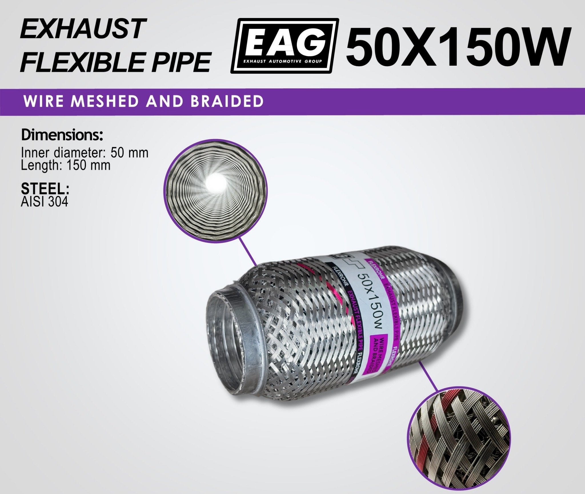 Exhaust Flex Pipe 50×150 (Wire meshed and Braided)