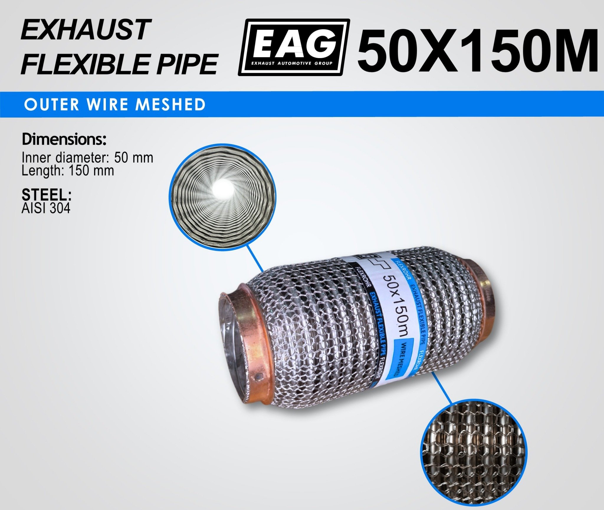 Exhaust Flex Pipe 50×150 (WIRE MESHED)
