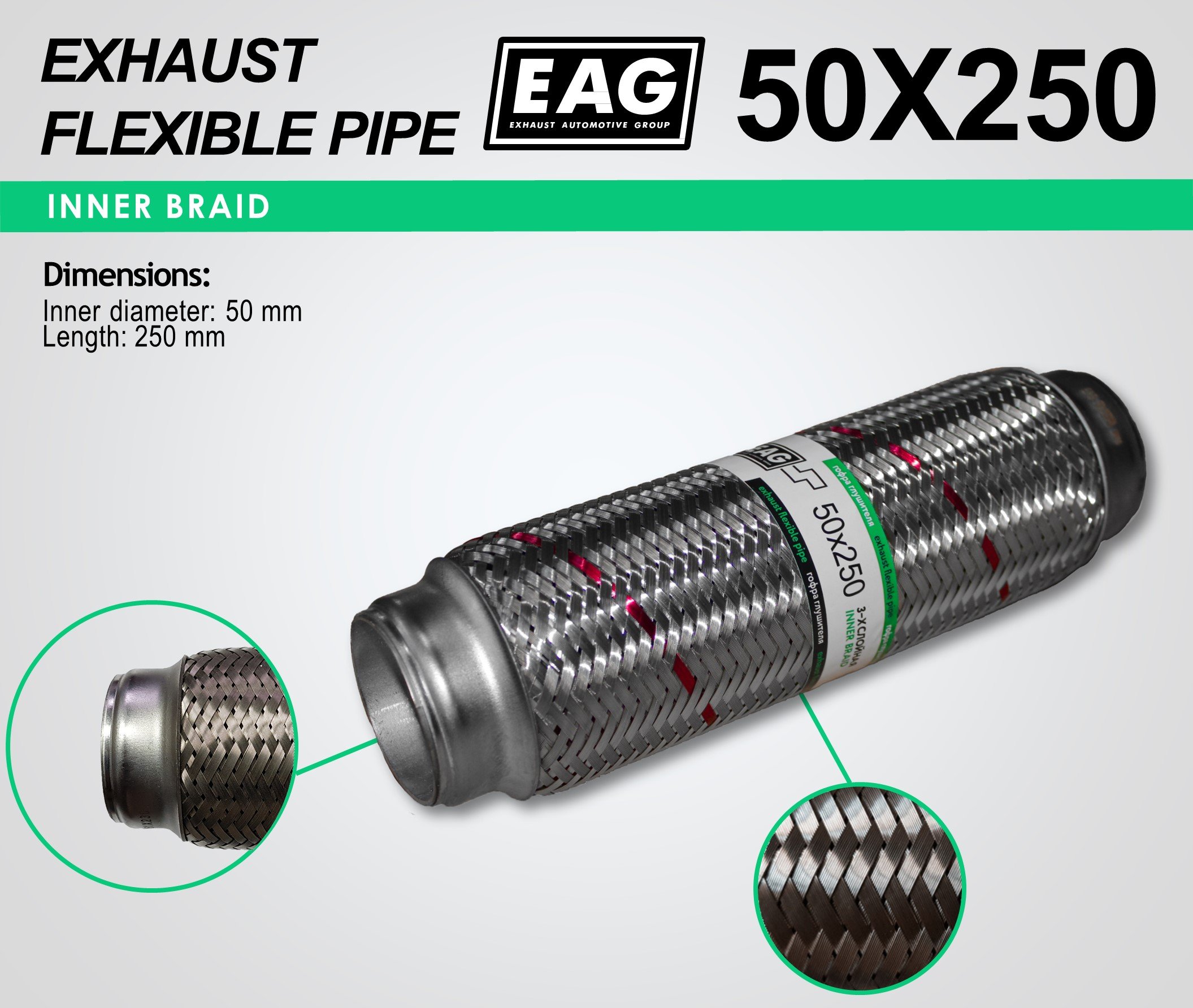 Exhaust Flex Pipe 50×250 (INNERBRAID)