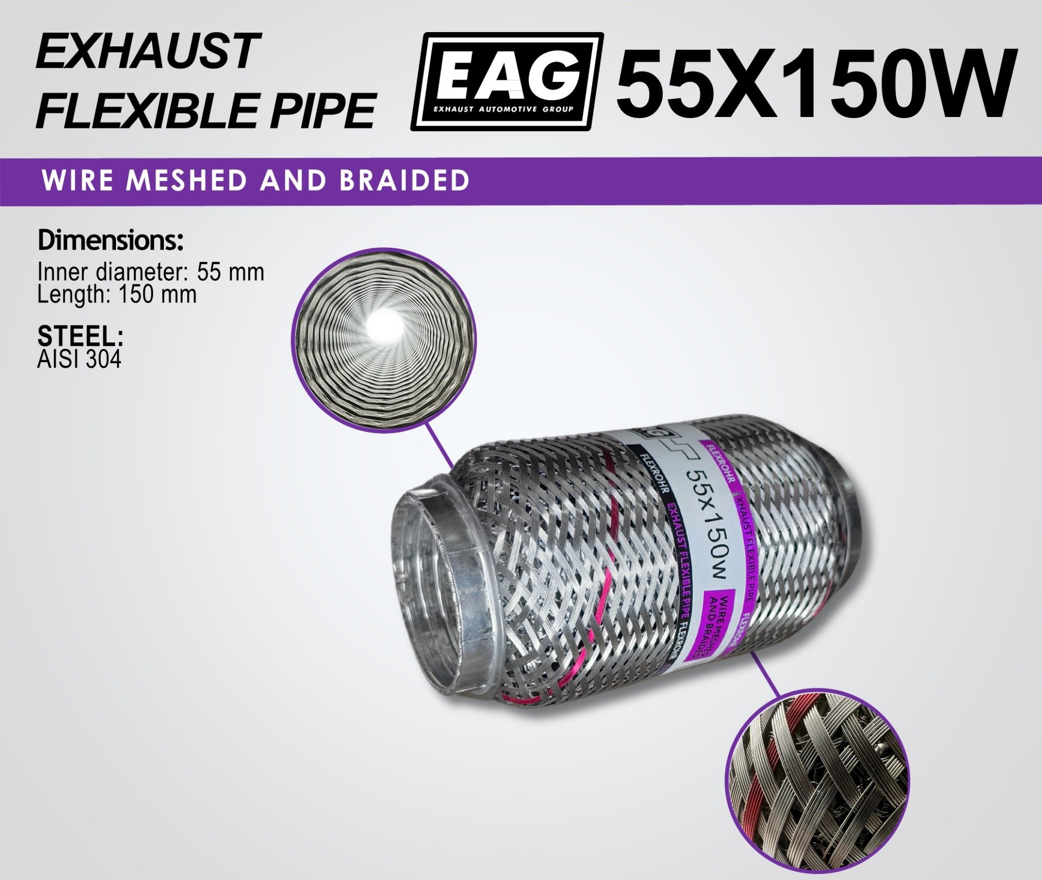Exhaust Flex Pipe 55×150 (Wire meshed and Braided)