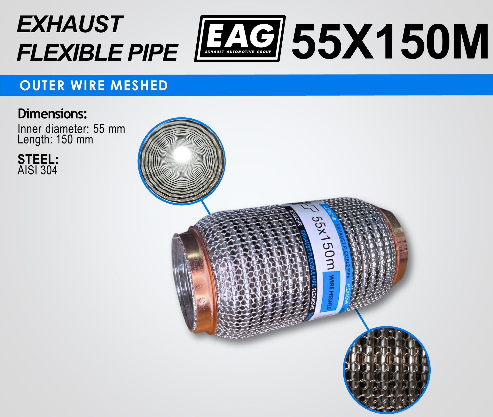 Exhaust Flex Pipe 55×150 (WIRE MESHED)