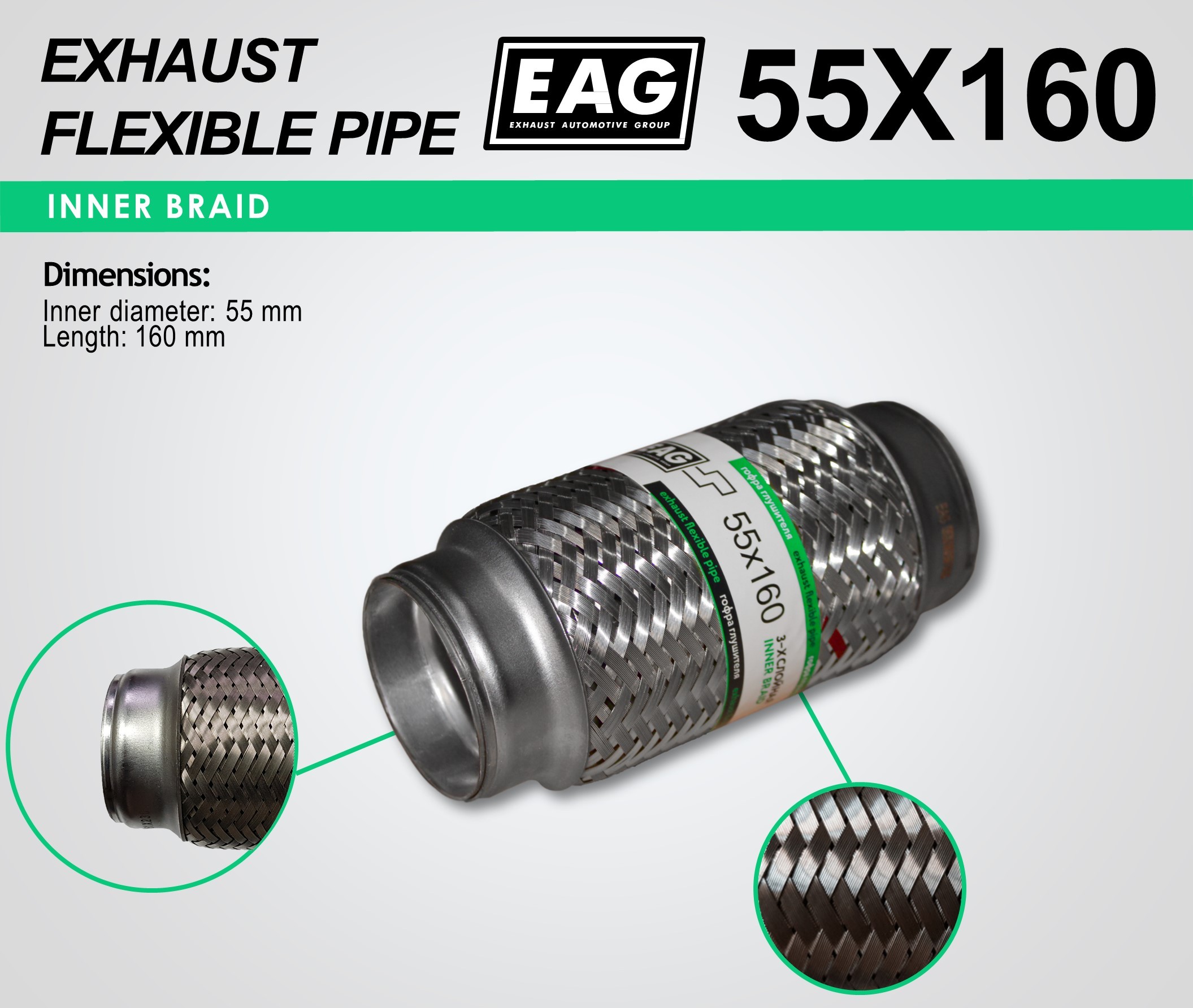 Exhaust Flex Pipe 55×160 (INNERBRAID)