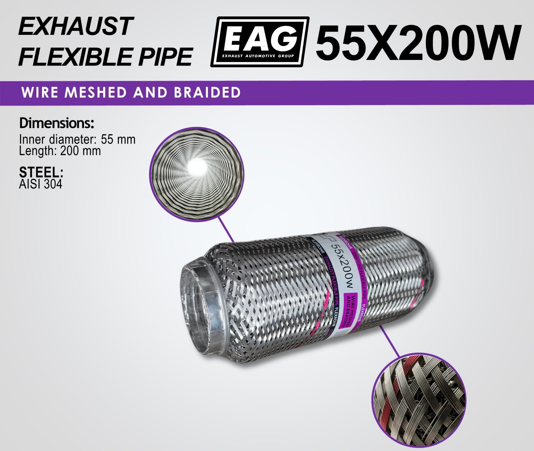 Exhaust Flex Pipe 55×200 (Wire meshed and Braided)