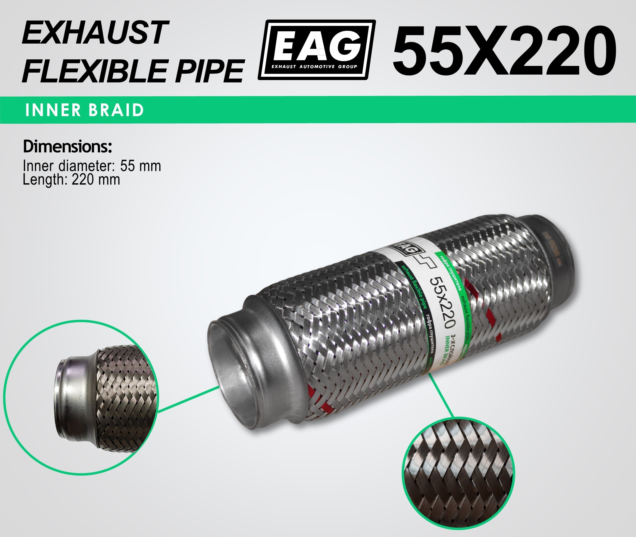 Exhaust Flex Pipe 55×220 (INNERBRAID)
