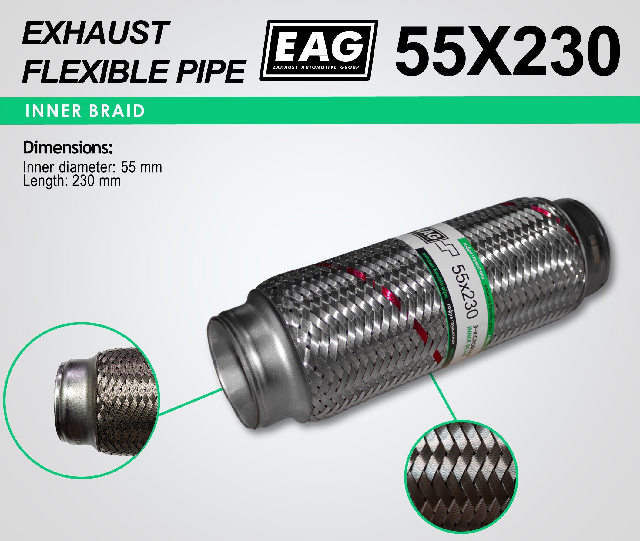 Exhaust Flex Pipe 55×230 (INNERBRAID)