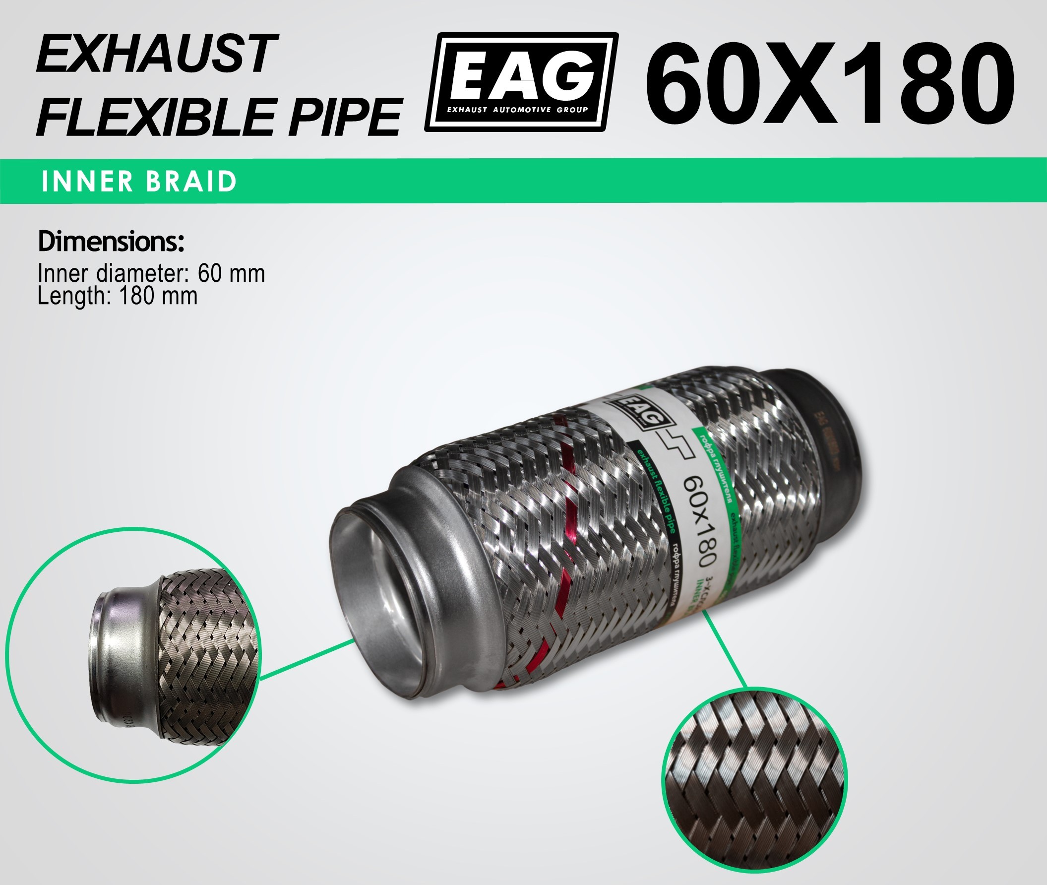 Exhaust Flex Pipe 60×180 (INNERBRAID)