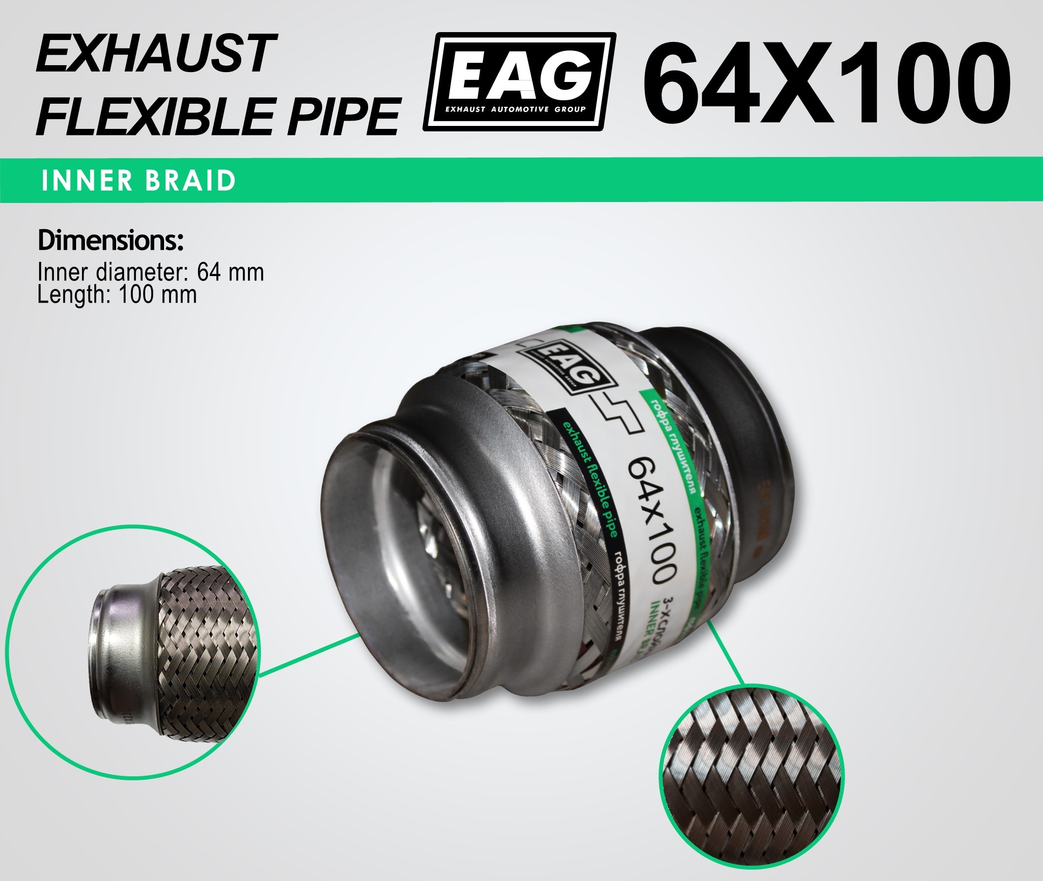 Exhaust Flex Pipe 64×100 (INNERBRAID)