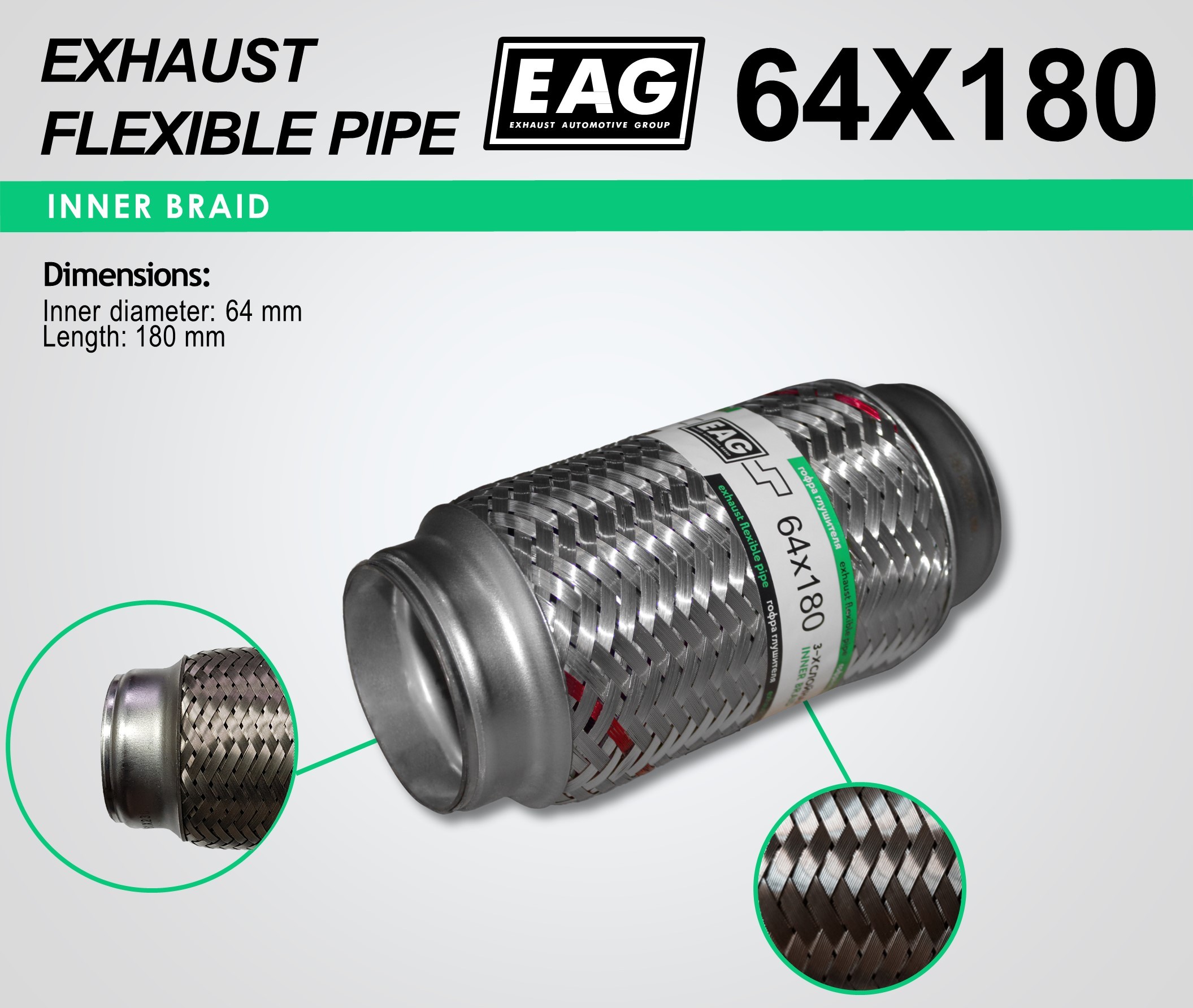 Exhaust Flex Pipe 64×180 (INNERBRAID)
