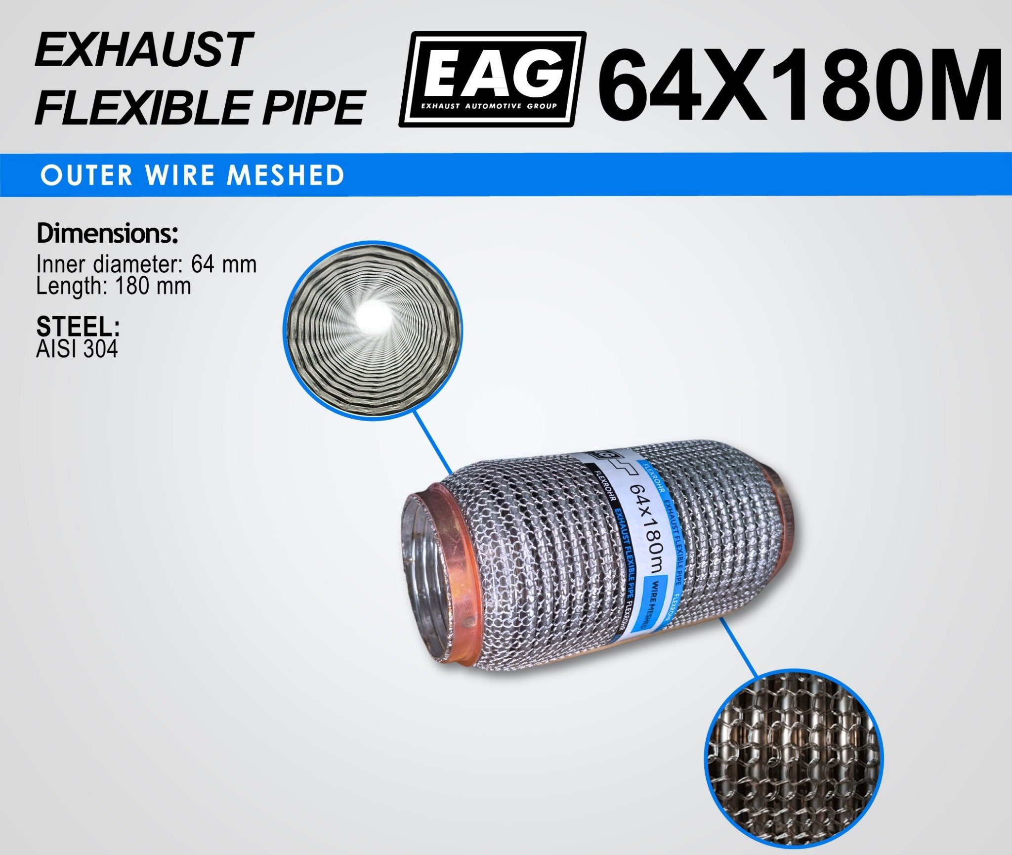 Exhaust Flex Pipe 64×180 (WIRE MESHED)