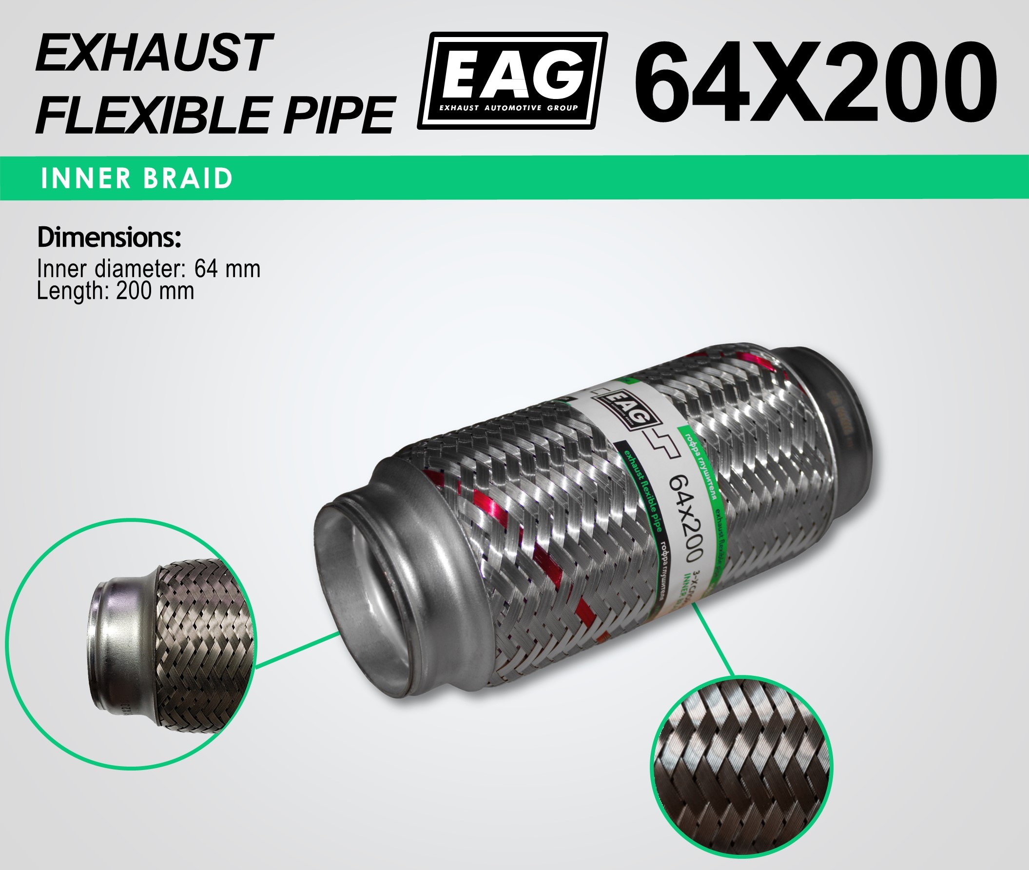 Exhaust Flex Pipe 64×200 (INNERBRAID)