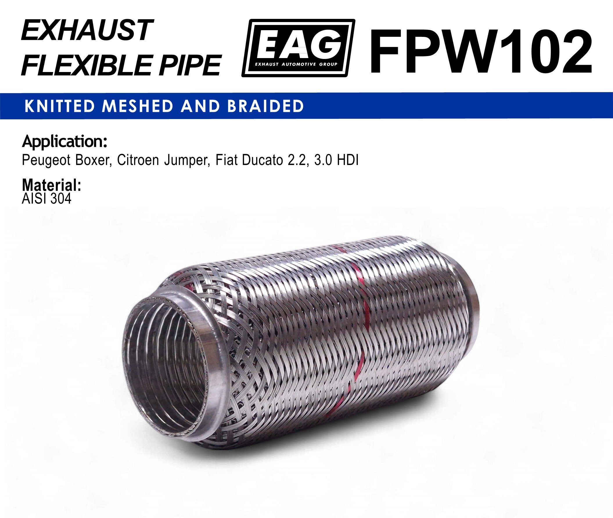 Exhaust Flex Pipe Peugeot Boxer, Citroen Jumper, Fiat Ducato 2.2, 3.0 HDI (Wire Meshed and Braided)
