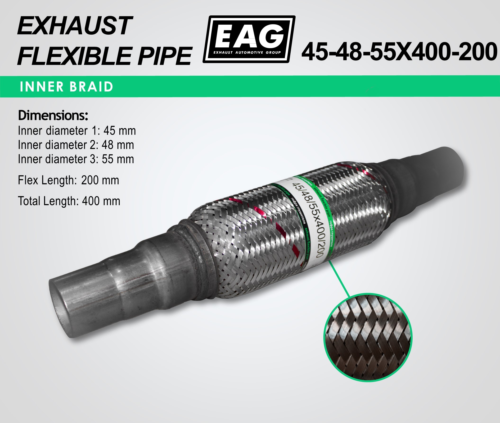 Exhaust Flex Pipe with Extension Pipe 45-48-55×400-200 (INNERBRAID)