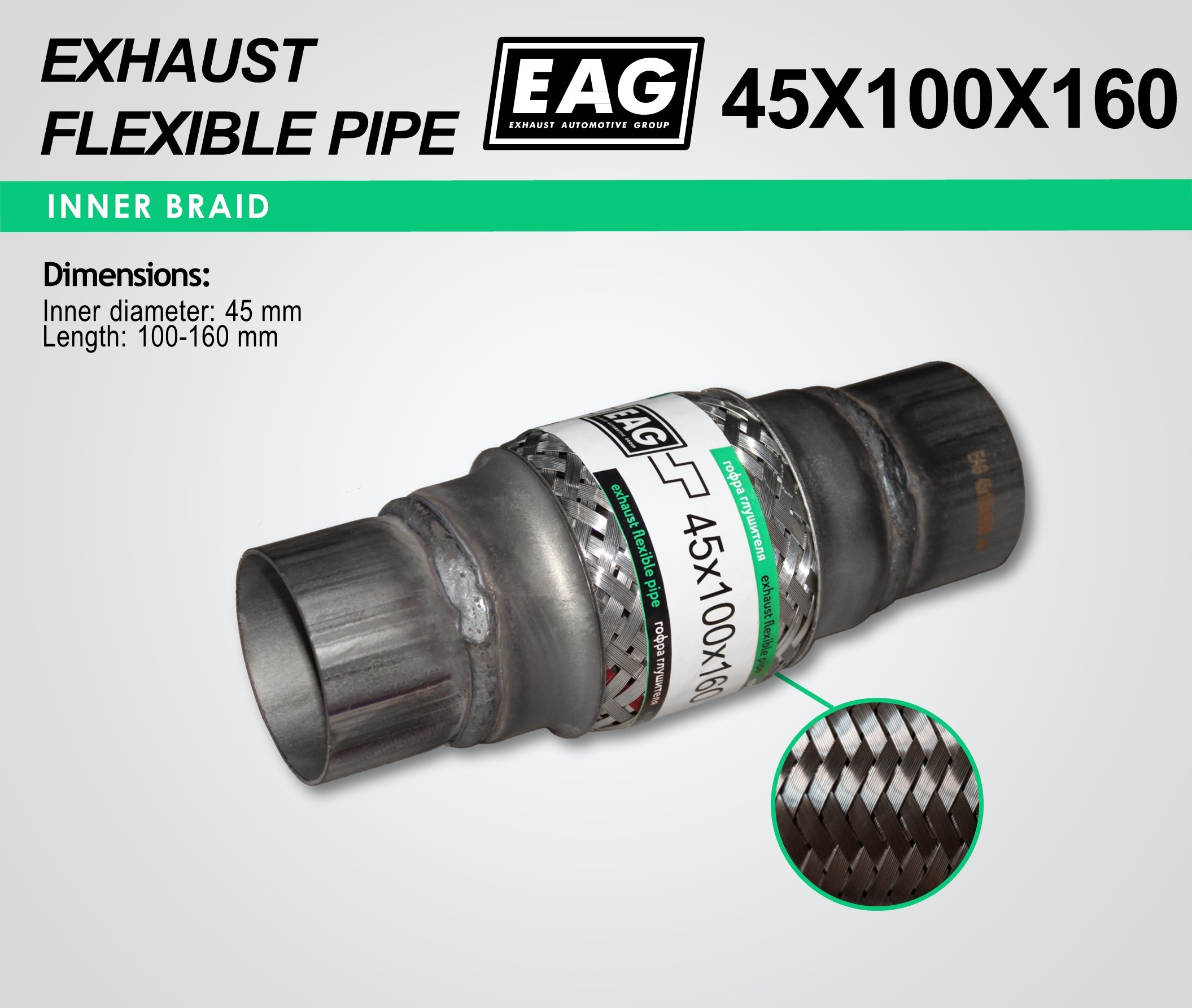 Exhaust Flex Pipe with Extension Pipe 45x100x160 (INNERBRAID)