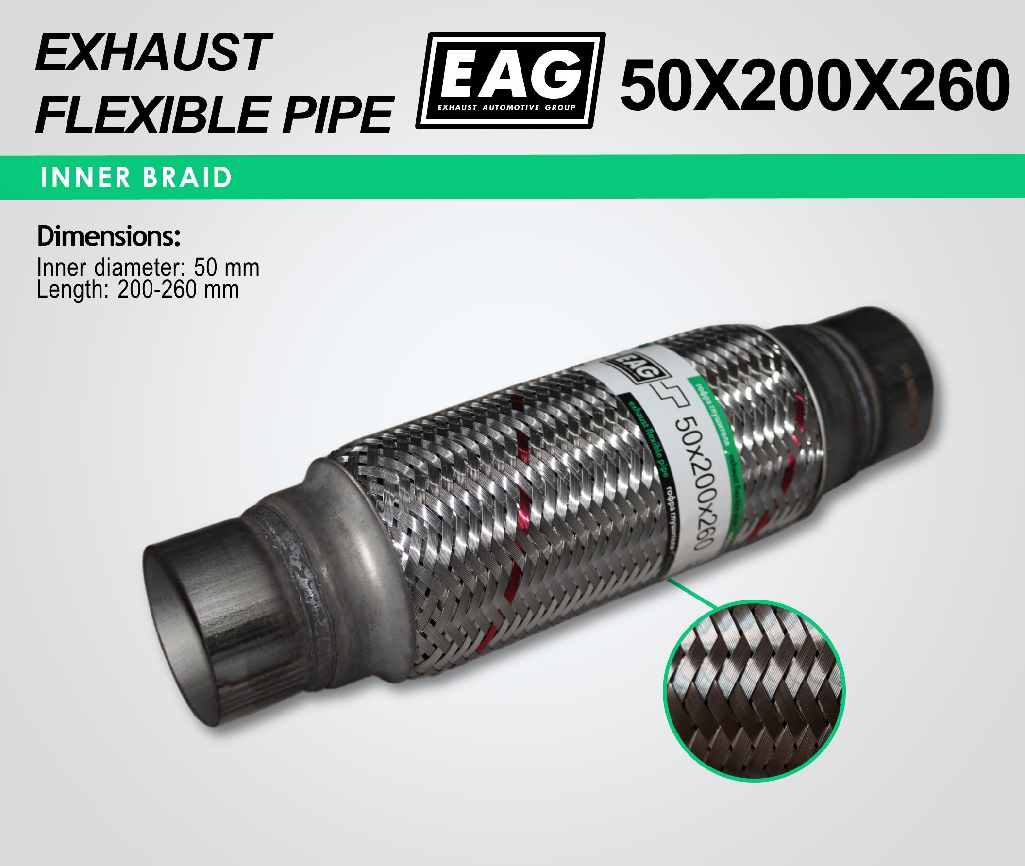 Exhaust Flex Pipe with Extension Pipe 50x200x260 (INNERBRAID)