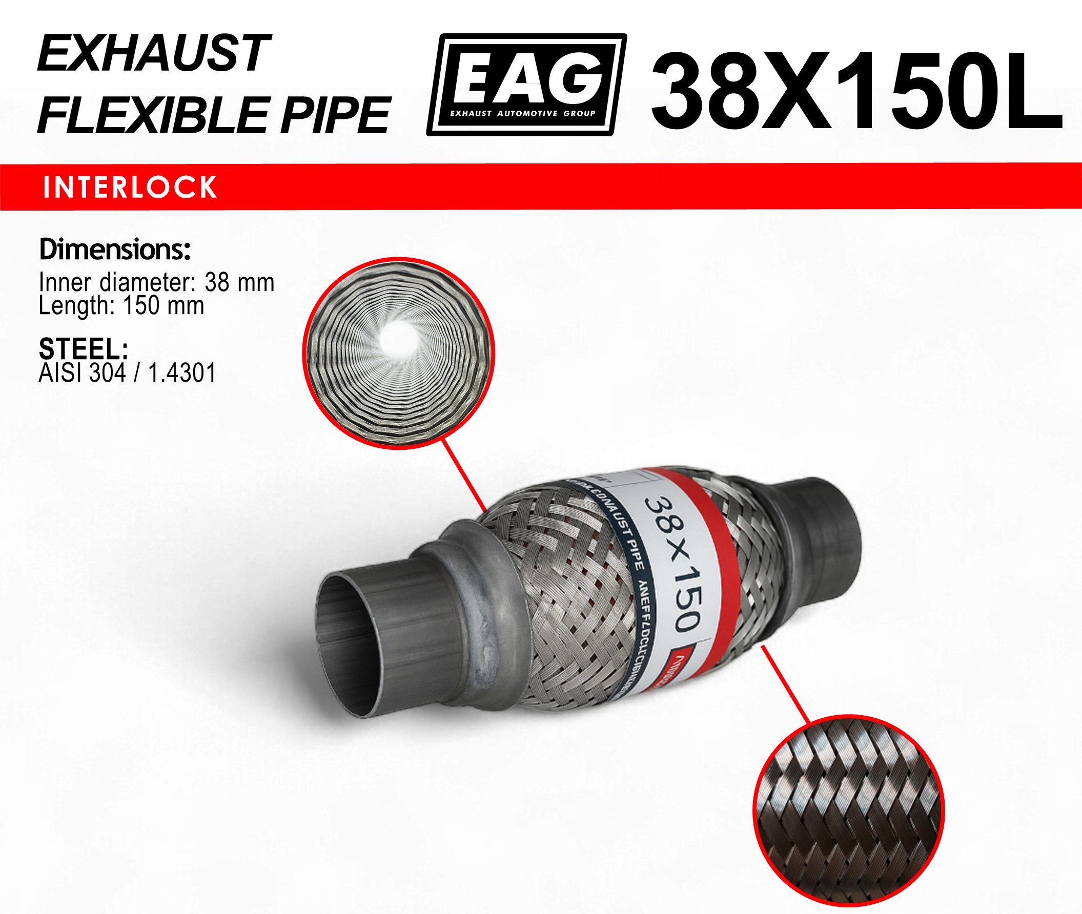 Exhaust Flex Pipe with Extension Tube 38×150 (INTERLOCK)