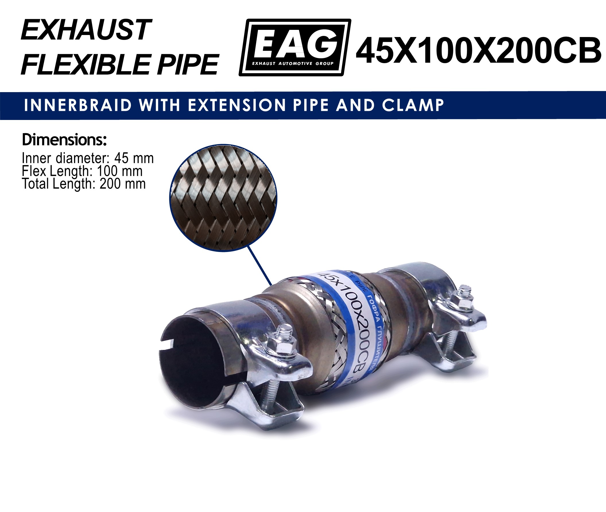 Exhaust Flex Pipe with Extension Tube and Clamp 45x100x200 (INNERBRAID)