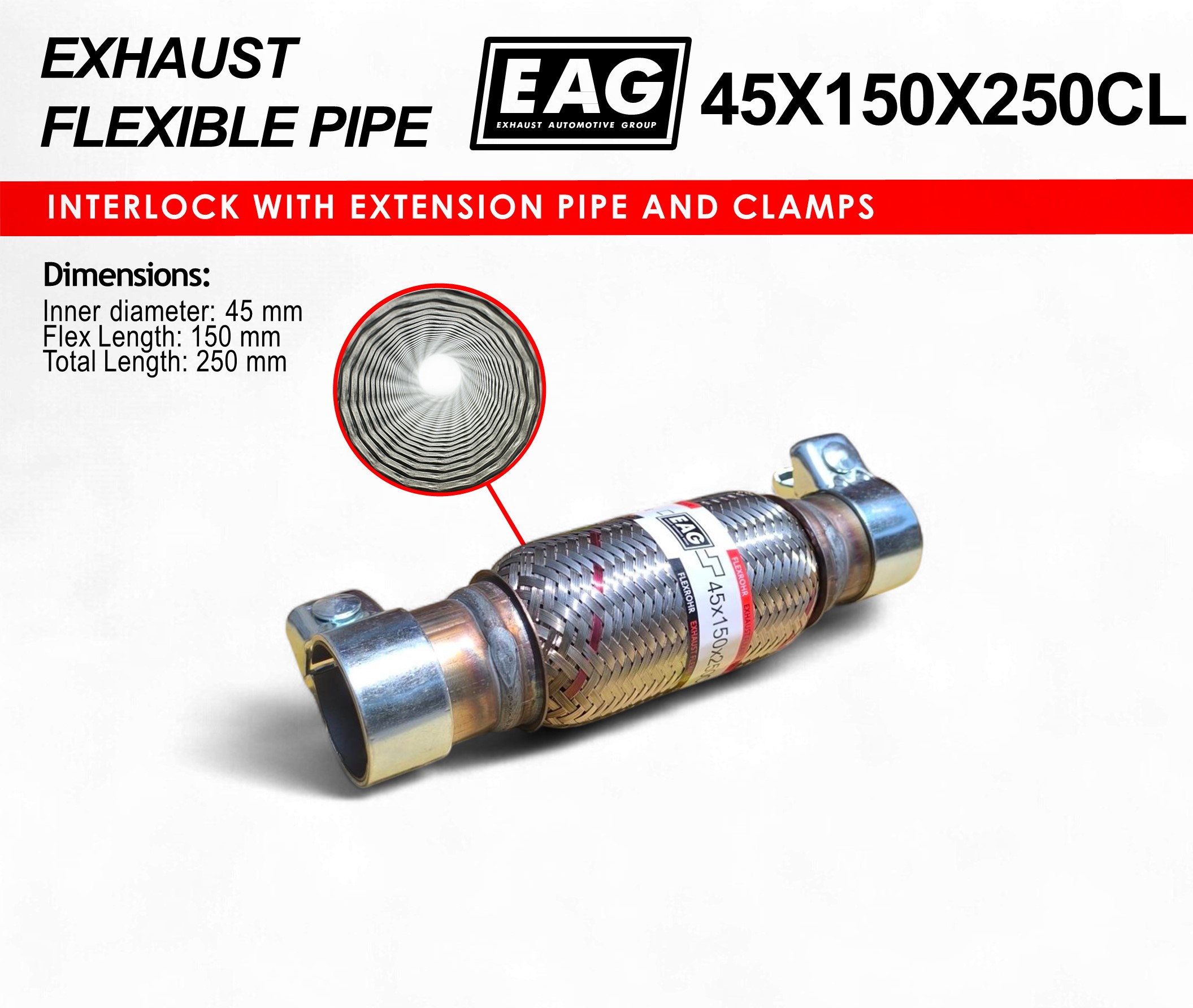 Exhaust Flex Pipe with Extension Tube and Clamp 45x150x250 (INTERLOCK)