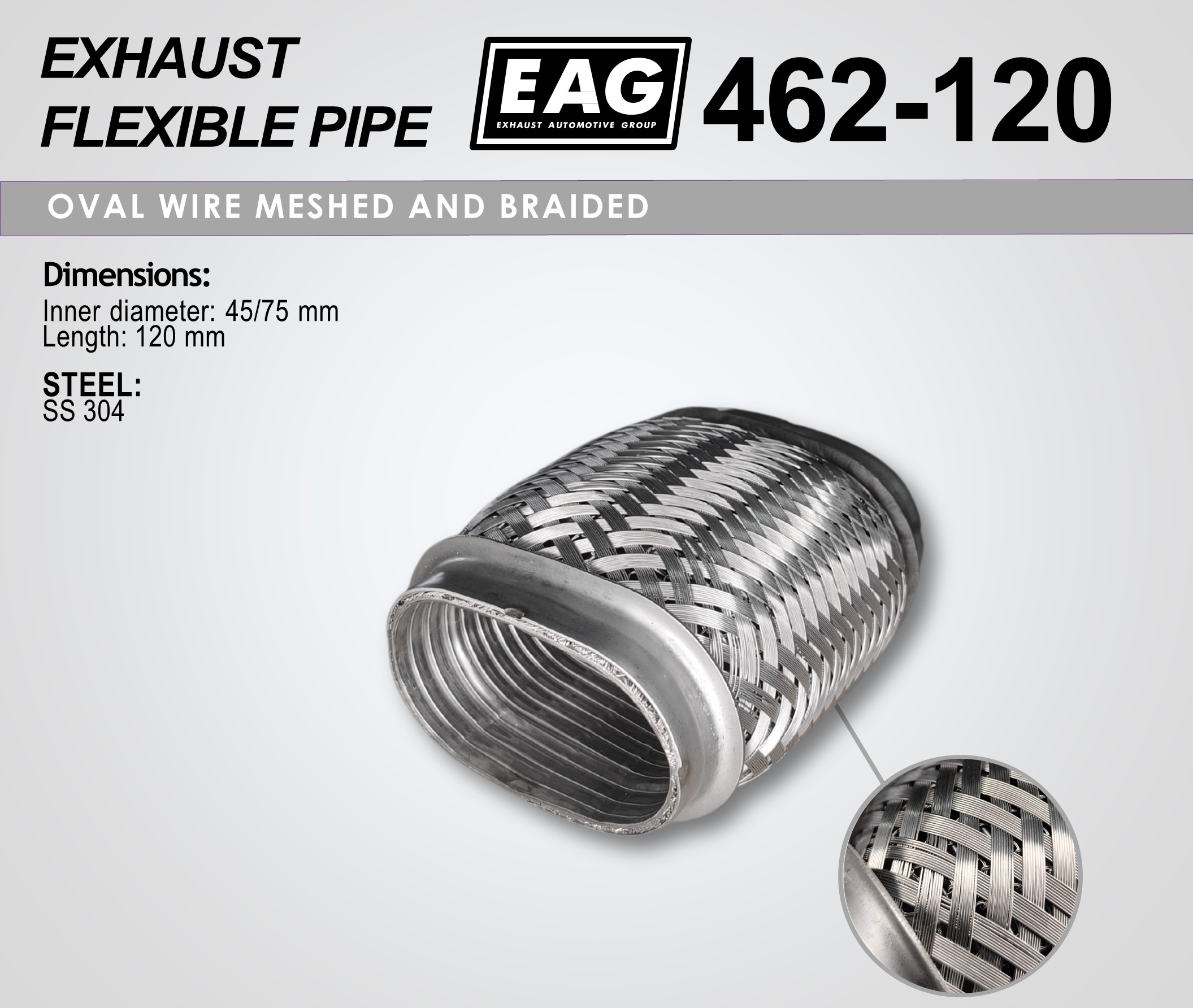 Flex pipe 45-75×120 (OVAL WIRE MESHED AND BRAIDED)