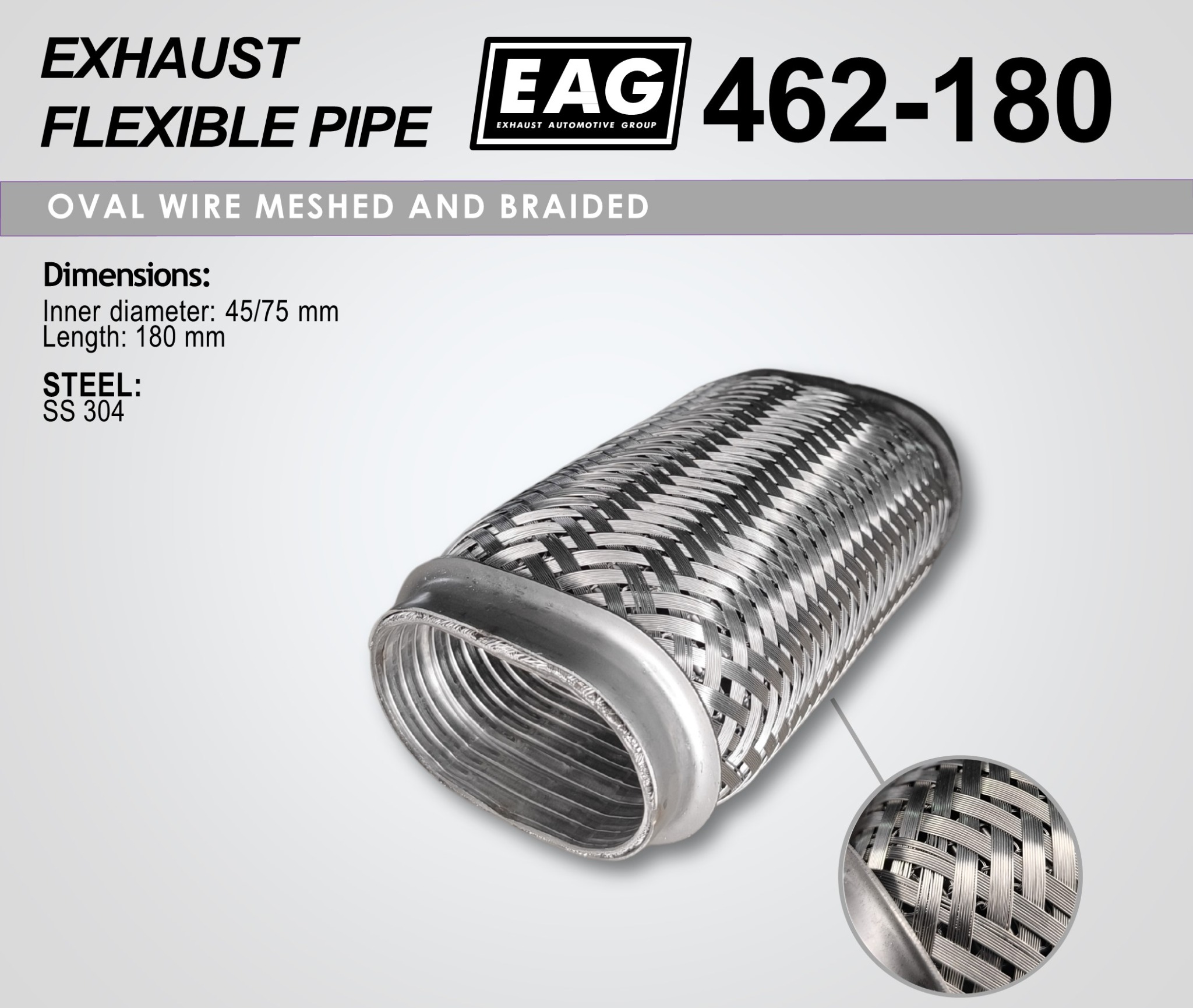 Flex pipe 45-75×180 (OVAL WIRE MESHED AND BRAIDED)