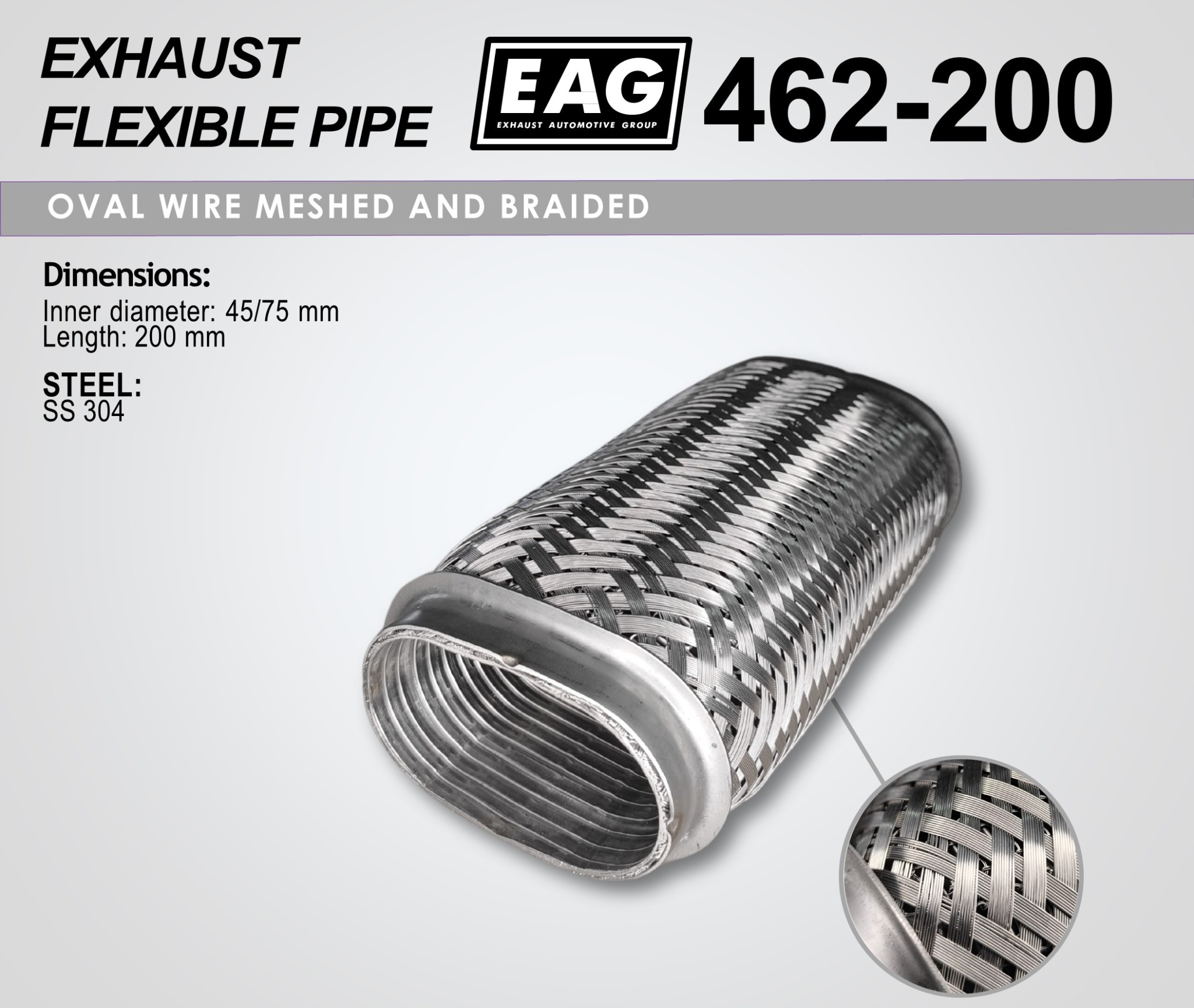 Flex pipe 45-75×200 (OVAL WIRE MESHED AND BRAIDED)